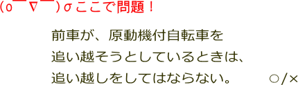 ○後車が追い越しを終わるまで、速度を上げてはいけません。